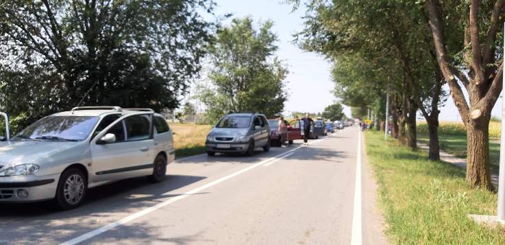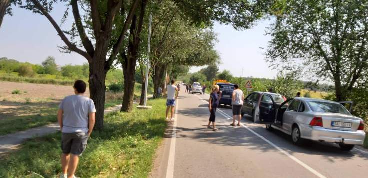 На кривини из Апатина код Курјачице судар мотора и аутомобила италијанских регистарских таблица. Колона возила је велика а задржавања у саобраћају су већ 2 сата...