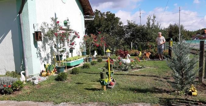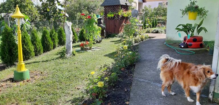 Његово весело, шарено двориште зауставља погледе пролазника. Лики мало лаје, па одустане. Мирољубива је то куца, само најављује посетиоце. Једино пчелама не да на своје цвеће. Иако га је препуно двориште, а она је стално у покрету, вешто избегава мобилијар, пуне саксије и цветне грмове. Све је на свом месту, заливено, уредно, осмишљено. Баш онако, како оку прија...