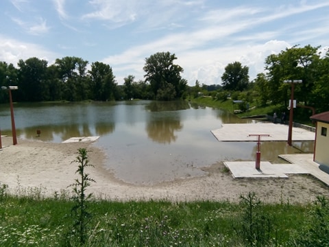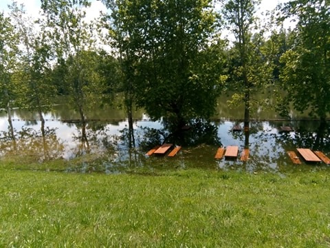 Игралиште у песку, клупе, столови и сав остали мобилијар под водом...