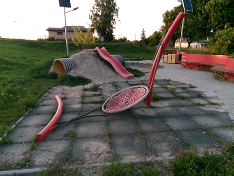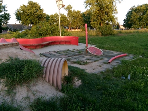 Од отварања „Дунавског еко парка“ уз апатинско шеталиште (између Храма и „Шарана) прошло је тек две године. Последњих безмало годину дана је то руина, обрасла у траву, са покиданом љуљашком и искиданом подлогом, којој деца не прилазе, јер за игру не постоје основни услови. Нажалост, не прилазе јој ни они, које би, по опису радног места, требало да занима у каквом је стању. И, ником ништа...