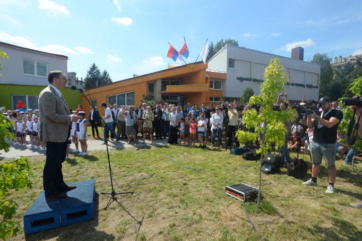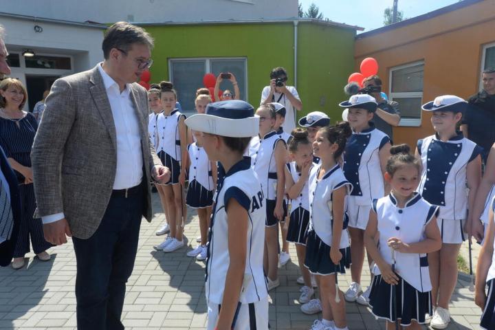 Вучић је у Апатину обишао један од објеката Предшколске установе Пчелица, у којем су прошле године, по први пут изграђене и јаслице, које примају 64 деце.