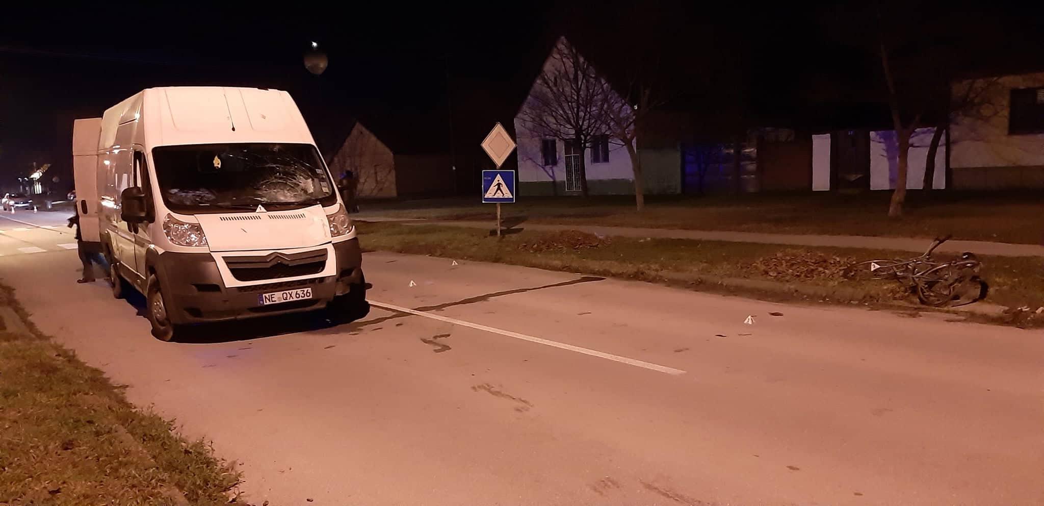 Ова тешка саобраћајна несрећа догодила се вечерас, на раскрсници улица Петра Драпшина и Николе Тесле. Комби, за чијим воланом је, како смо сазнали на лицу места, био Ј.М. из ромског насеља, кретао се улицом Петра Драпшина, према Кружном насипу и то, по изјави очевидаца, доста брзо. До званичних информација о кретању страдалог човека, пошто је на месту несреће остало потпуно уништено бицикло, нисмо успели доћи, јер је увиђај још био у току.