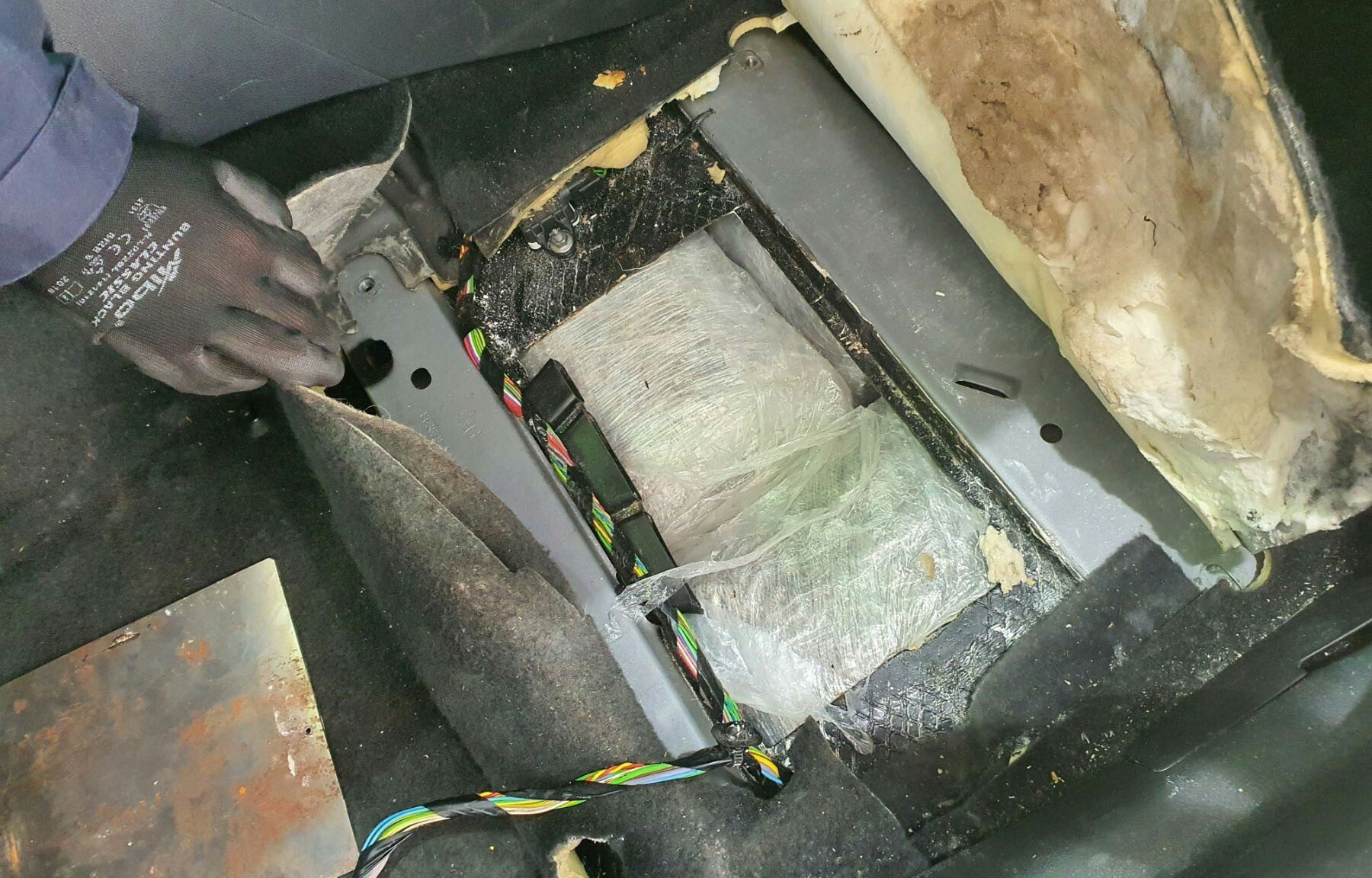 Приликом претреса аутомобила марке „пежо“ којим је управљао осумњичени, у посебно направљеним шупљинама у поду, полиција је у сарадњи са службеницима Управе царина пронашла 28 пакета марихуане укупне тежине 27,9 килограма.