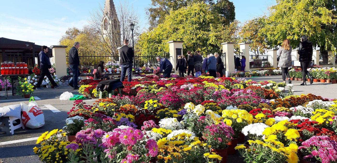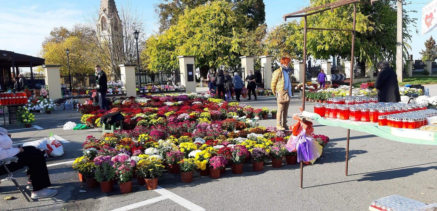 Плато испред апатинског гробља данас је, буквално, био прекривен цвећем. У понуди је највише било хризантема, разних боја и величина, али и бројних аранжмана од вештачког цвећа.