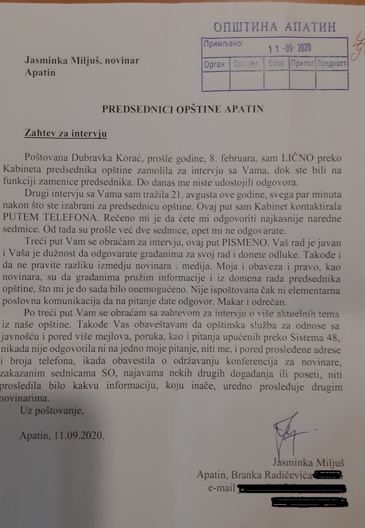 Илустрације ради, председници општине сам упутила писмени Захтев за интервју 11. септембра прошле године. Одговор још чекам...