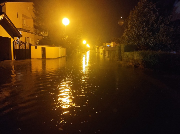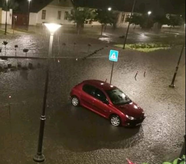 Подручје Апатина синоћ је захватио јак пљусак. Нова количина падавина, после кише дан раније, додатно је отежала отицање воде која се у појединим деловима града задржала на коловозима и поплавила их.
