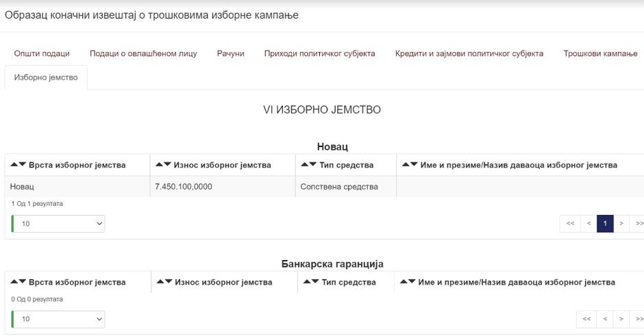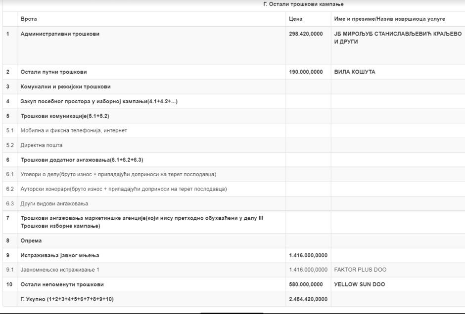 - "Колико је бахато Мица бундица трошила новац пореских обвезника који је добила од државе за кампању, говори и невероватан податак да је са наменског рачуна, платила 580.000 динара козметичком салону у Раковици чији је редован гост. Ради се о Wеллнесс и СПА Yеллоw Сун Доо, регистрованом за негу лепоте и тела! Невероватно је и то да Агенција за спречавање корупције ћути и да су wеллнесс третмане, сауну, базене, масаже и спа програм који Yеллоw Сун нуди на свом сајту прихватили као легитиман трошак у кампањи Заветника за парламентарне изборе. А Вили "Кошута" 190.000 динара да се одморе после кампање... Они су у 2019. имали 112.000 динара буџет за комплетан рад, да немају трошкове закупа ни режијске трошкове, ни ништа, немају просторије ниједне. А сада имају просторије у сваком граду. Другим речима, све просторије које имају су нелегалне и плаћају их из црних фондова. На њиховом списку донатора су сви дали до 40.000 динара, као и СНС, јер нису у обавези до 40.000 у складу са законом да одмах објаве то у току кампање на свом сајту."