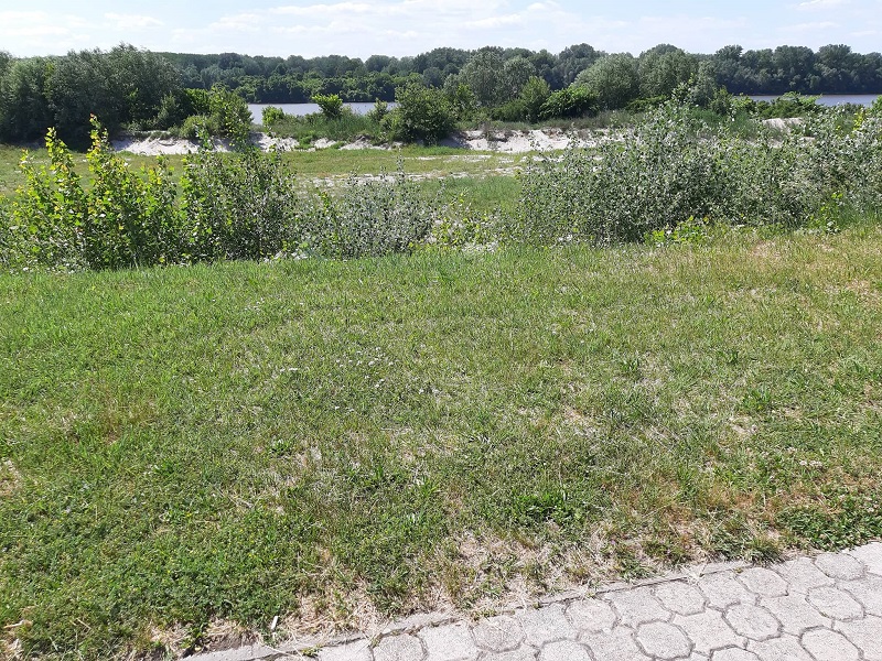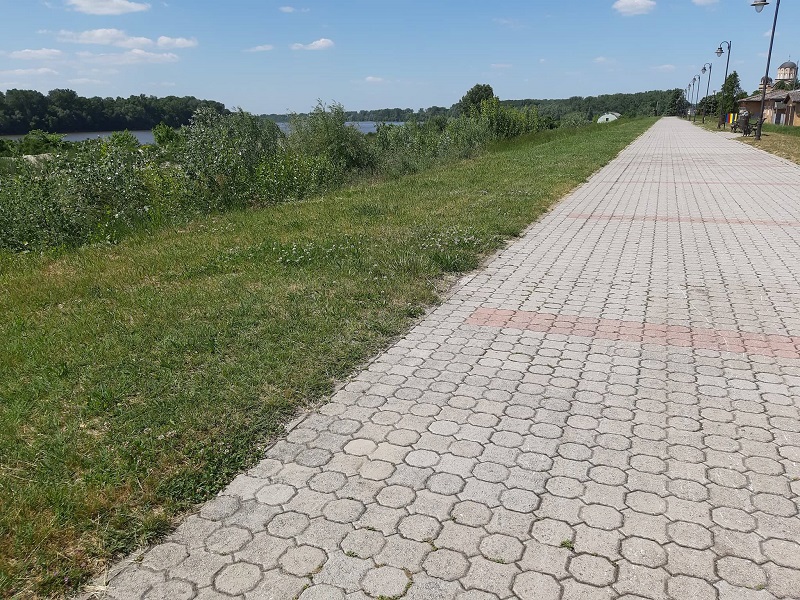 На шеталишту, најлепшем простору поред Дунава, тужан призор. Скоро свака друга клупа је окрњена, са сломљеним или откинутим даскама, неке су поодавно склоњене са шеталишта, али никад и враћене. Грмови и стабла, као и гомиле песка, сада већ обрасле у траву, добрим делом заклањају поглед на реку.