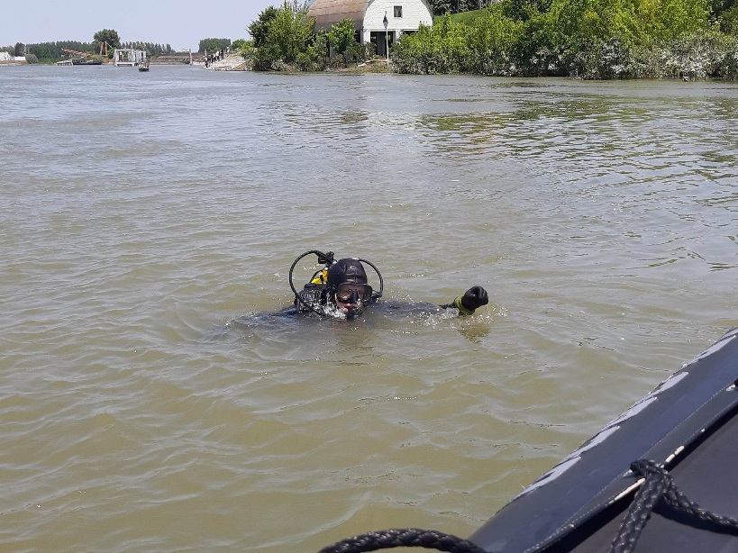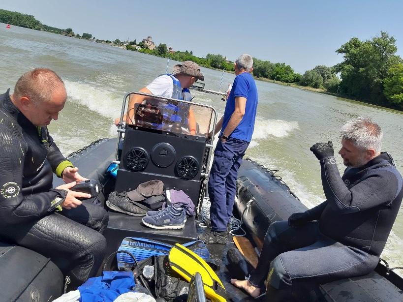 На води, пловећи са апатинским рониоцима, срећемо и једну од две посаде београдских ронилаца, волонтера, чланова Удружења спасилаца на води Србије.