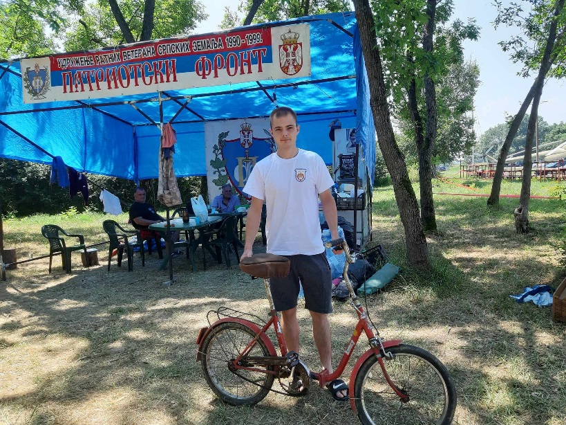 Сима Луцић (22) из Бачке Паланке мини бициклом прешао 80 км само да би обишао другаре у Омладинском кампу Патриотског фронта „Сабор 2023“ у Апатину!