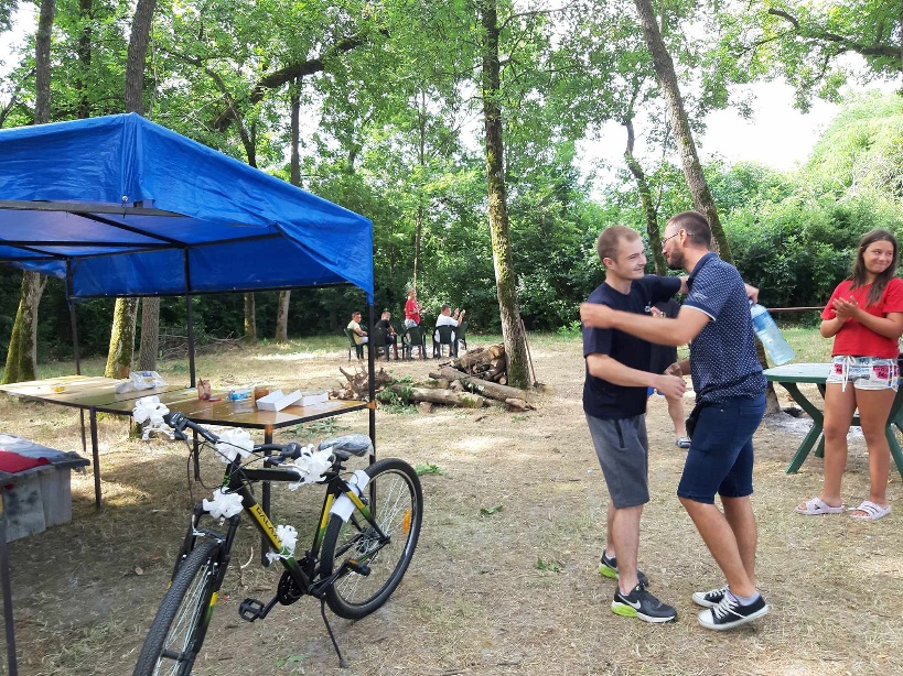 Прича о Сими Луцићу (22) из Бачке Паланке, који је у суботу мини бициклом прешао 80 км само да би обишао другаре у кампу Патриотског фронта у Апатину добила је најлепши епилог. Наиме, у кампу га је данас дочекало ново бицикло, поклон изненађење групе добрих и хуманих људи из Апатина и Пригревице који су о његовом подвигу сазнали из приче објављене у нашим новинама и одлучили да га обрадују.