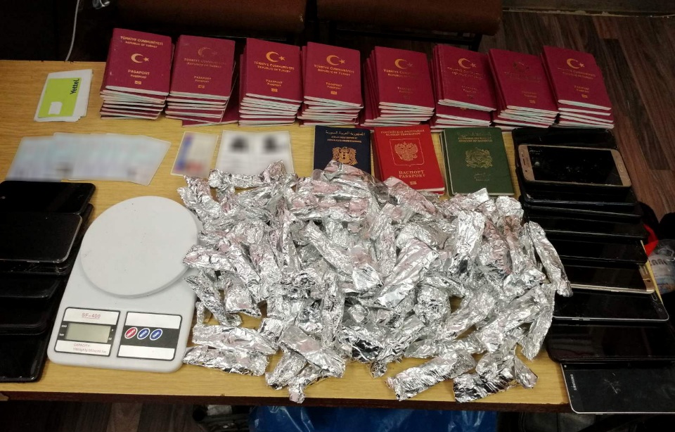 Полиција је претрагом терена пронашла 20 комада хладног оружја и других предмета, укупно 240 страних личних докумената и путних исправа, као и 18 телефона.