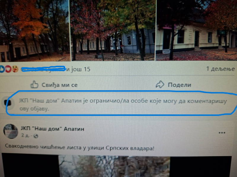 Отуда још више чуди то што је ЈКП “Наш дом” онемогућио коментаре читалаца на својој страници на фејсбуку, на којој приказују део својих активности и постављају обавештења за грађане.