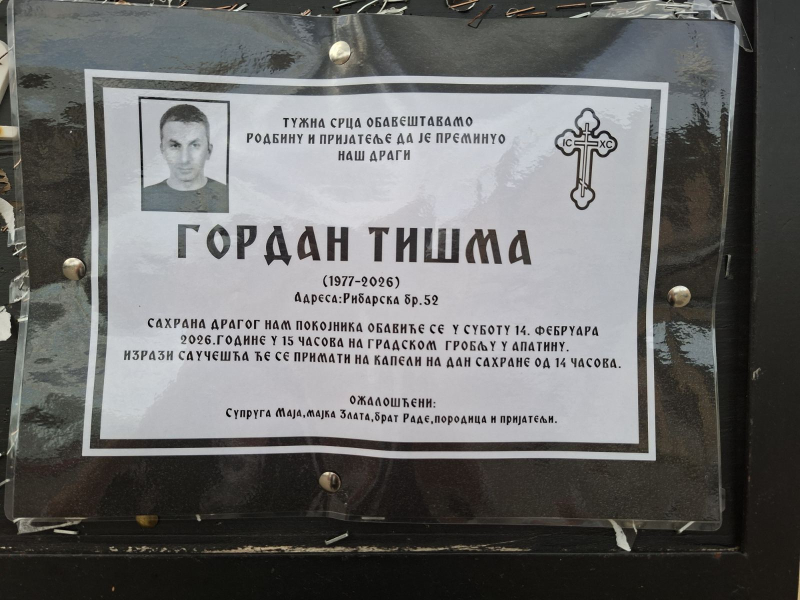 Гордан Тишма (49) пронађен је ноћас мртав у свом дому у Рибарској улици у Апатину. Како сазнајемо из извора блиских истрази, Гордан је извршио самоубиство вешањем. Његово беживотно тело пронашла је супруга и одмах позвала полицију и хитну помоћ, која је нажалост само могла да констатује његову смрт.