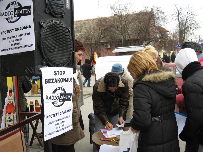 Радио Апатин, чији предајник је искључен 31. августа 2008. године, је постојао пуних 39 година и био једна од три најстарије радио станице у Војводини. У моменту гашења, новине „Глас комуне“ су имале дужу традицију, пуних 48 година. Недељама је, пре тога, у Апатину, Сонти и Пригревици потписивана петиција против гашења ових медија, која је добила подршкау преко 4.000 грађана. Нажалост, без успеха.